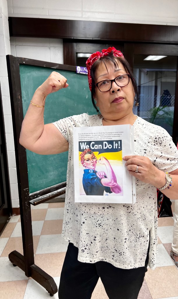 In honor of Labor Day, the ladies of Na Leo Lani channeled the spirit of Rosie the Riveter at our September 6 rehearsal. No heavy lifting for us, though — when singing barbershop, we strive to keep it light. 🙂 Enjoy the pics below of our enthusiastic Rosies. Three cheers for woman power!