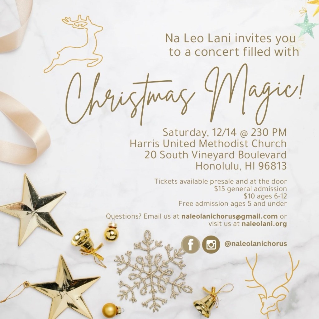 Contact naleolanichorus@gmail.com for more information, or simply come to our rehearsals and check out Music and Mistletoe for yourself!
