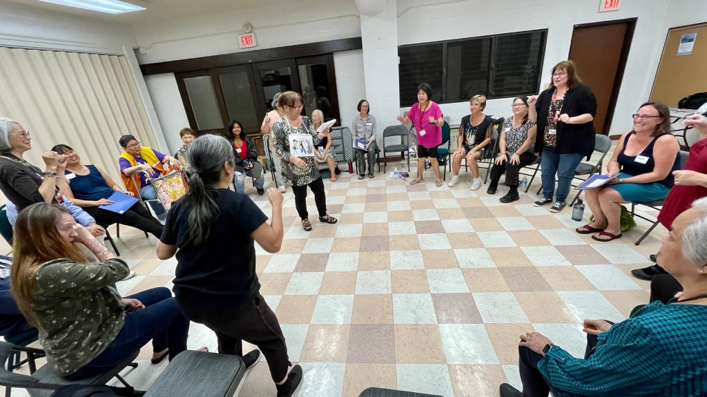 We had three special guests join us at our rehearsals in April: former Na Leo Lani director Lars Isaacson, who will be bidding adieu to the islands and moving to the continent later this spring, Barbie Dodson, a sister Sweet Adeline and former Honolulu Blend Show Chorus member who often visits Hawaiʻi, and Mark Conching, whose guest-coaching, as always, made our chords really ring.