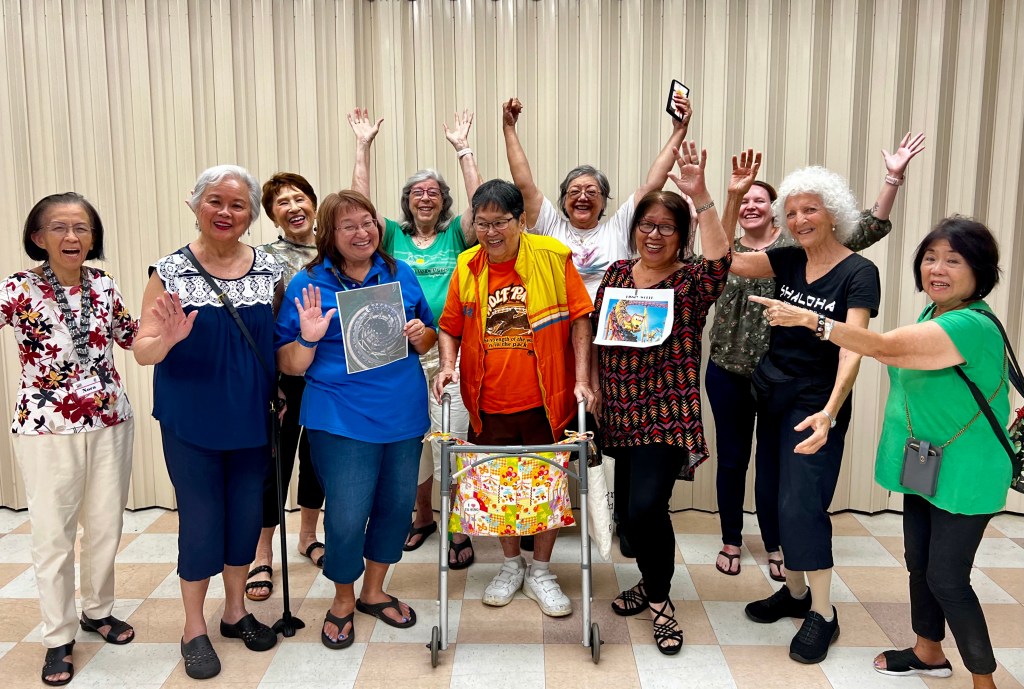 Rosie spoke of how singing with the chorus had been a source of solace and uplift after her mother’s passing and a long stint volunteering at Hospice Hawaii. Summer, April, and others said they loved the sense of community they have found at NLL. JoAnne — hands down our most radiant and glamorous member — described how singing with Na Leo Lani has kept her young. She is now 88, and her daughter tells her she should never quit! And proving that we are never too old to expand our skill set and build our résumés, Ruth, now in her nineties, imparted how being a part of Na Leo Lani for so many years had put her in line for a leadership position at her assisted living facility, where she now heads the hymn-singing group.