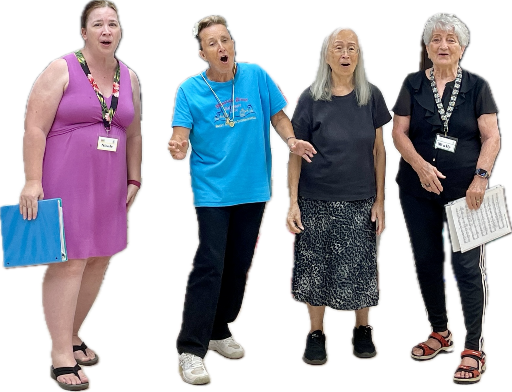Na Leo Lani members never cease to amaze. What’s our secret to gorgeous and graceful aging? Barbershop harmony, of course!! Whether we are soaring on the high notes or maintaining a strong foundation on those oh-so-low bass notes, Na Leo Lani’s commitment to a cappella music keeps us young, healthy and fit!