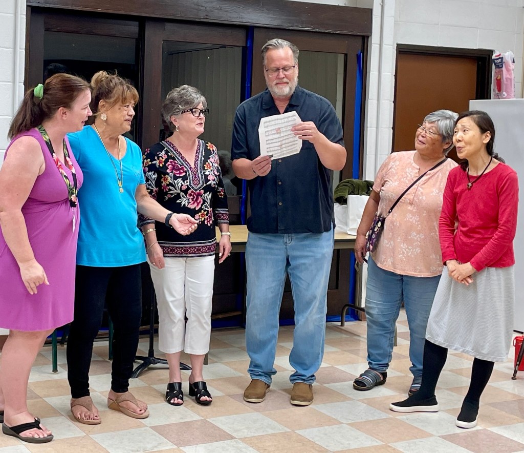 We had three special guests join us at our rehearsals in April: former Na Leo Lani director Lars Isaacson, who will be bidding adieu to the islands and moving to the continent later this spring, Barbie Dodson, a sister Sweet Adeline and former Honolulu Blend Show Chorus member who often visits Hawaiʻi, and Mark Conching, whose guest-coaching, as always, made our chords really ring.