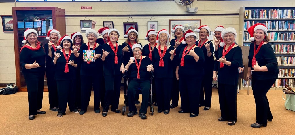 Na Leo Lani has been busy singing all around Honolulu this season, with crowd-pleasing gigs at local venues like this one (see pic) at the Hawai’i Kai Public Library. Upcoming events include free performances at the Kaimuki Public Library and Kahala Mall. See our Calendar of Events page for details, or visit this page for announcements!