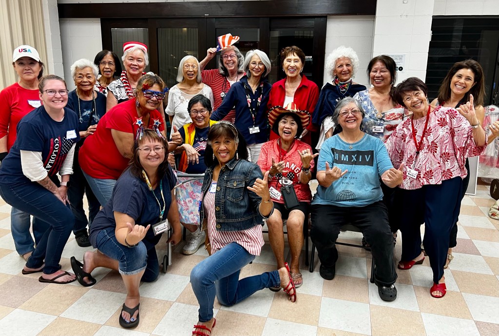 On Armistice Day, November 11 (Veterans Day in the U.S.), Na Leo Lani performed for residents of the Plaza Hawai’i at Punchbowl and celebrated at our evening rehearsal with songs and colors honoring those who have served. Click here for a FB reel of our Plaza pics, and see below for our rehearsal photo.